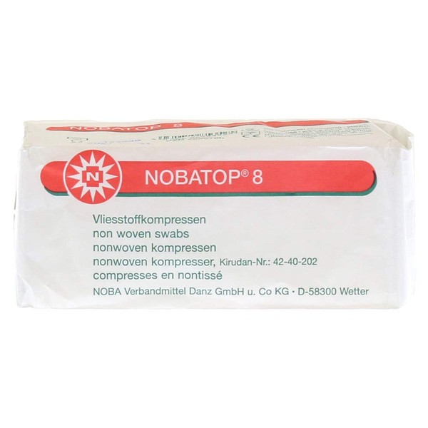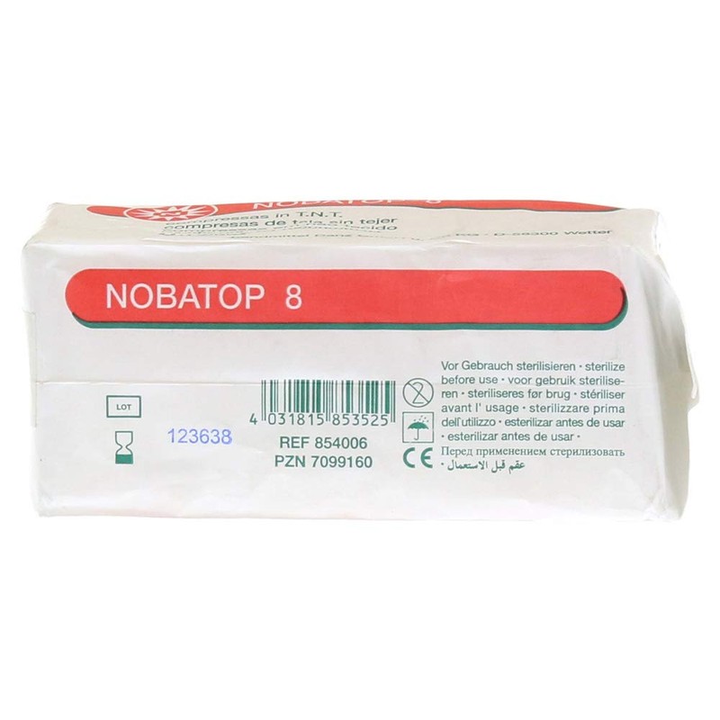 1 x Nobatop 8 non-sterile non-woven fabric compresses 4-ply one size.