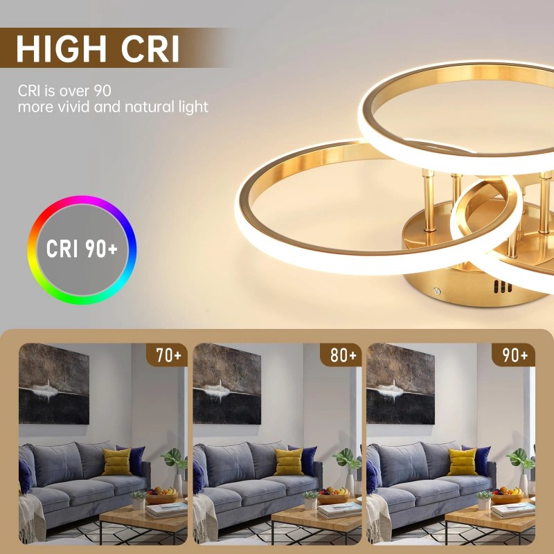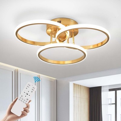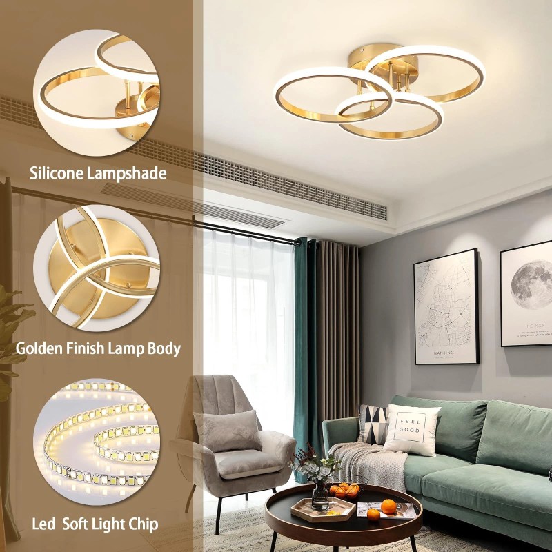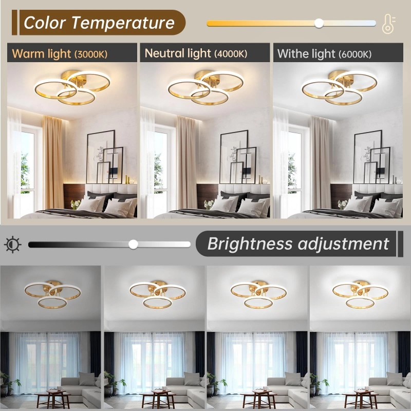 • RING DESIGN - Gold modern ceiling light with simple 3-ring geometric design makes your room more stylish and a sense of space. Compared with the same type of ceiling light, the exquisite gold color ceiling light fixture is brighter. It is absolutely the best choice for your home lighting and decoration.