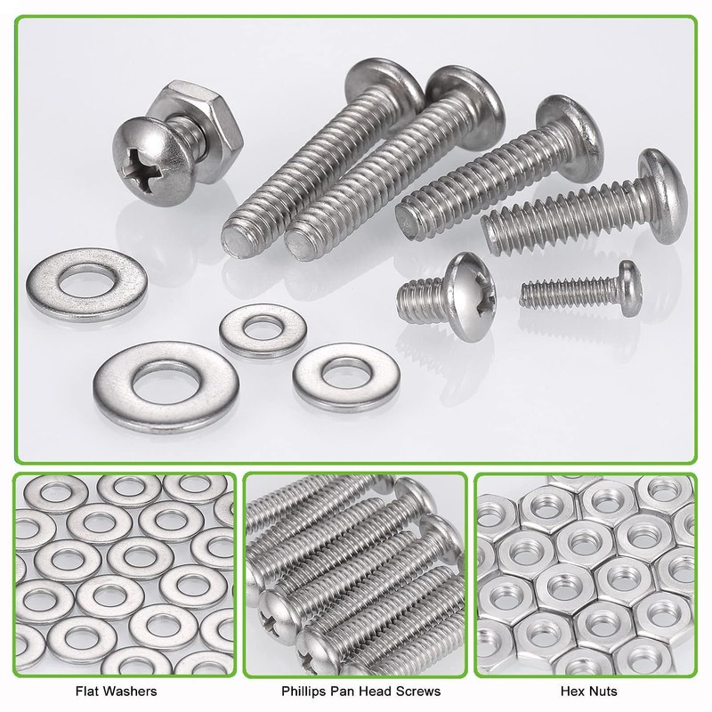 - ☘️【SAFETY & ECO-FRIENDLY】#2-56、#4-40、#6-32 Phillips Pan Head Screws and Nuts Adopt High Quality 304 Stainless Steel Material, which is Environmental Protection and Mercury-free & Toxic-free. No Toxic Substances Releasing, which will Ensure your Safety. Stainless steel screws have Superior Rust Resistance and the Excellent of Oxidation Resistance, which Can Ensure Long Time Using.