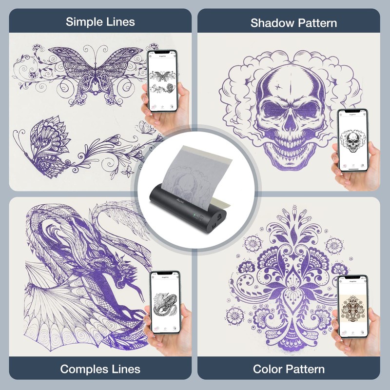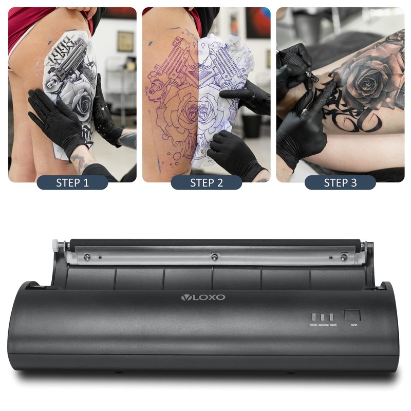 VLOXO Cordless Tattoo Stencil Printer, Portable Tattoo Thermal Transfer Copier Rechargeable Tattoo Printer Compatible with iOS & Android Phone with 10pcs Tattoo Stencil Paper