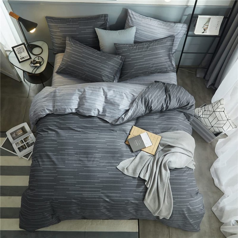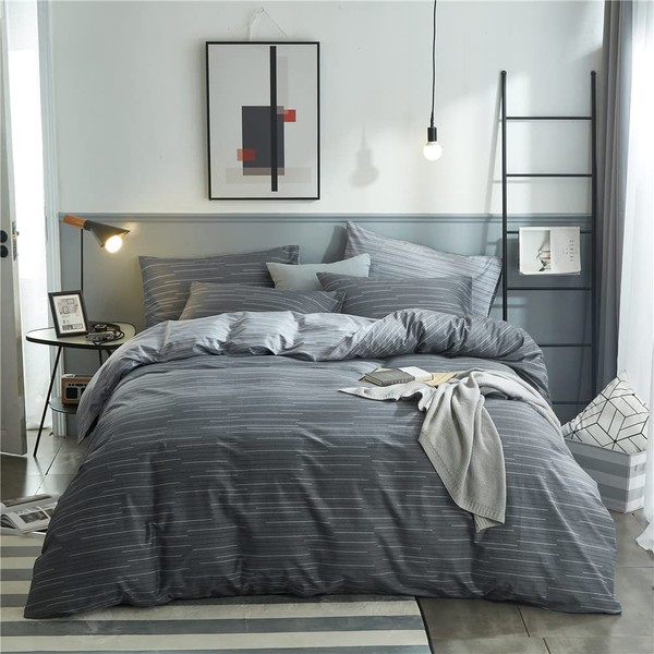 - 【Material】Slip into comfort and luxury! This grey blue striped duvet cover set is made from 100% premium cotton. It gives you the ultimate soft feel at a great value and keeps you comfortable all through the night.