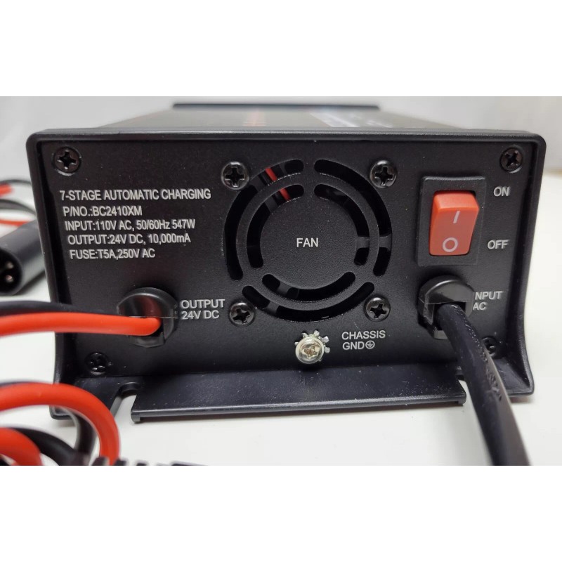 The BC2410XM is ideal for use with 40-150AH batteries (with 4-15hr est. charging time), yet capable of charging up to 240AH batteries in 24 hours.