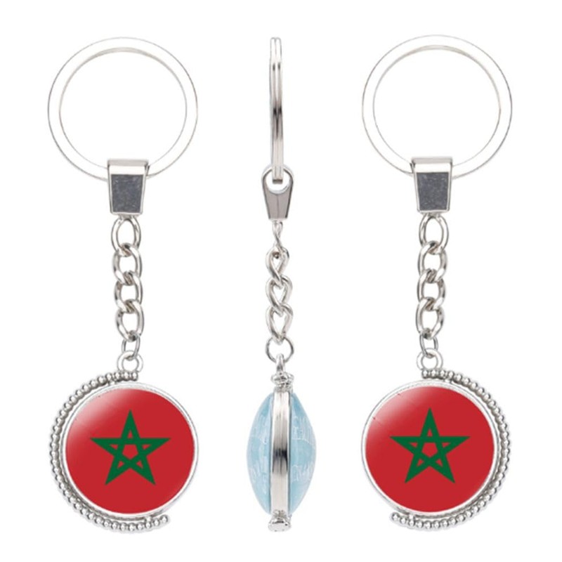 vmcoatdu Many Countries National Flag Double Sided Rotation Key Chain Keyring Gift Men Women Stainless Steel Glass Keychain, Morocco, One Size