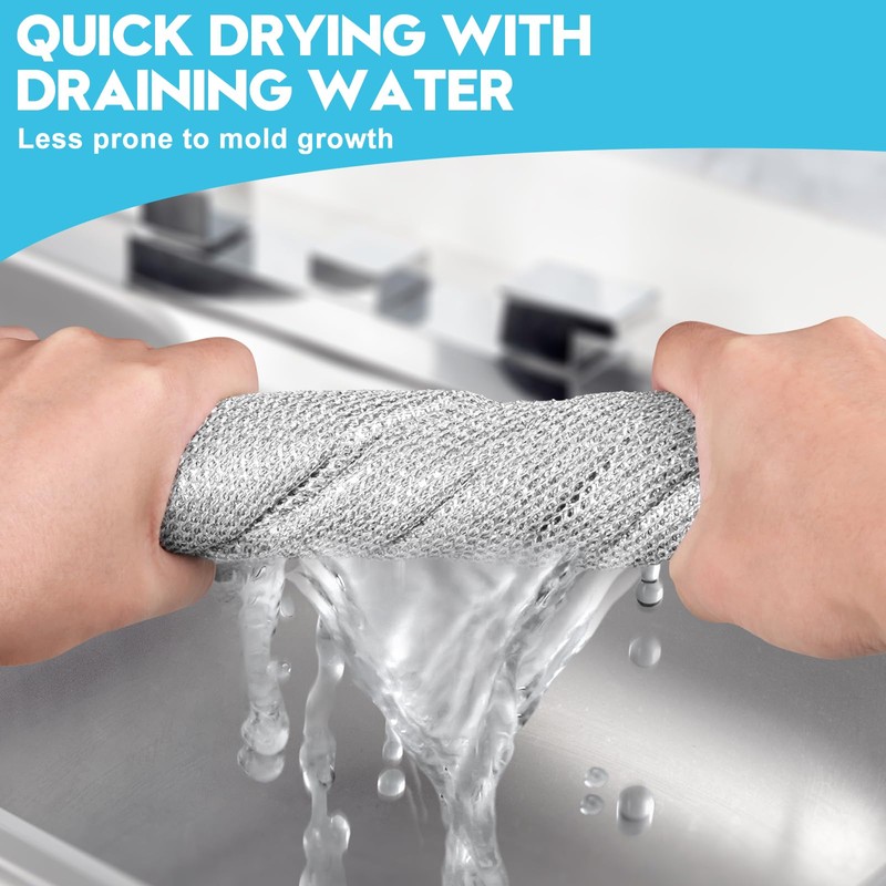 - 【Wide Use】The wire cleaning cloths are suitable for a variety of household cleaning tasks, such as kitchen, garage, shower room and other scenarios. Can be used wet or dry to easily scrub and clean dishes, sinks, counters, stove tops, pots, pans, ovens, grills and can even be used to scrub fruits, which makes it a must-have cleaning gadget for kitchens.