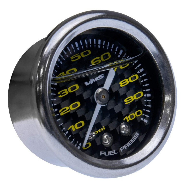 - [ IMPORTANT ] VMS RACING BRAND Design (NOT generic). Comes in VMS Racing Branded BOX. Brand New in Box / Never Used / Never Installed. VMS RACING Brand LIQUID FILLED 1 1/2" (38.1MM) O.D. mechanical 0-100 PSI fuel pressure gauge WITH the Honda/Acura fuel rail adapter. Gauge can be used as a fuel pressure , oil pressure , air pressure etc... gauge. Gauge will bolt on to a 1/8" NPT female port. VMS RACING engineers designed this gauge to be the ULTIMATE liquid filled gauge for many reasons: