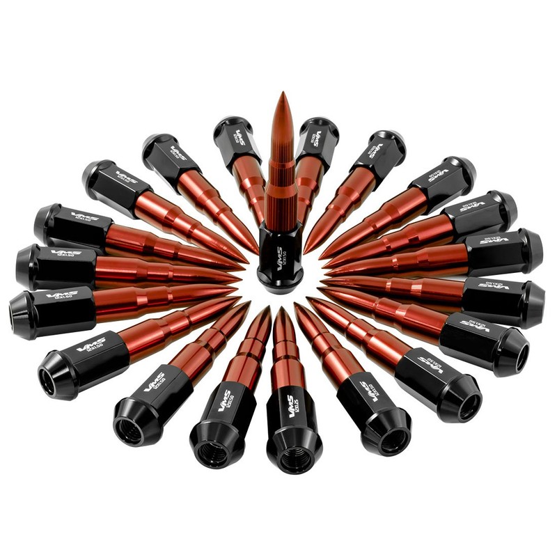 VMS Racing 20PC 112mm Cold Forged Steel Lug Nuts with Red Extended Bullets in...