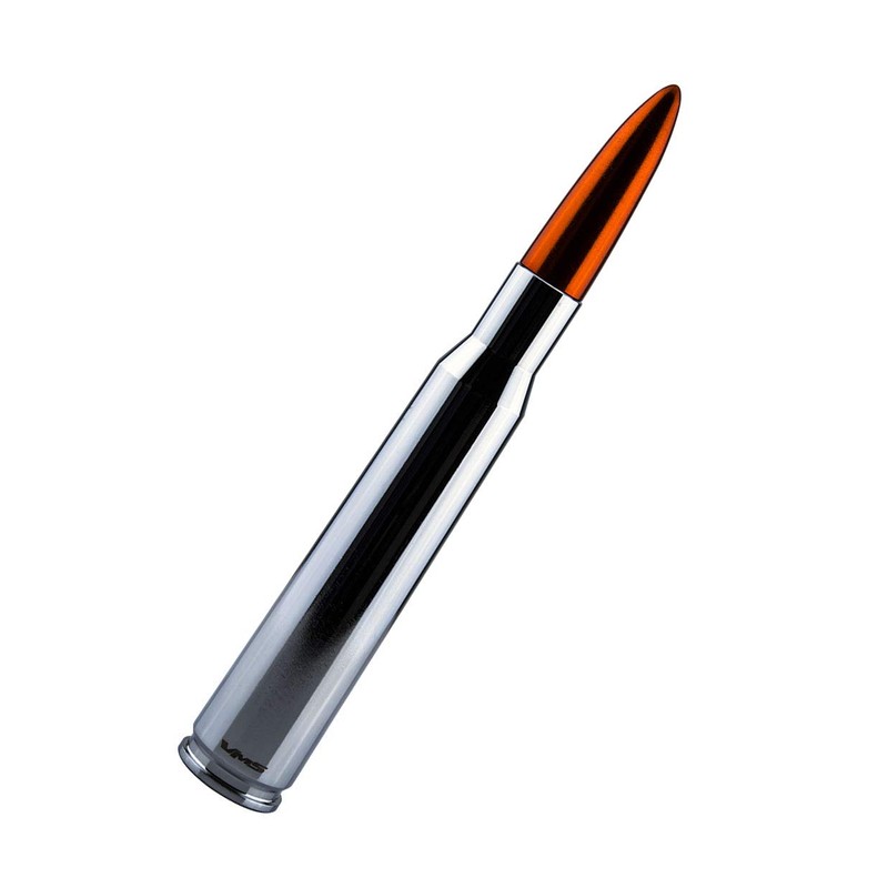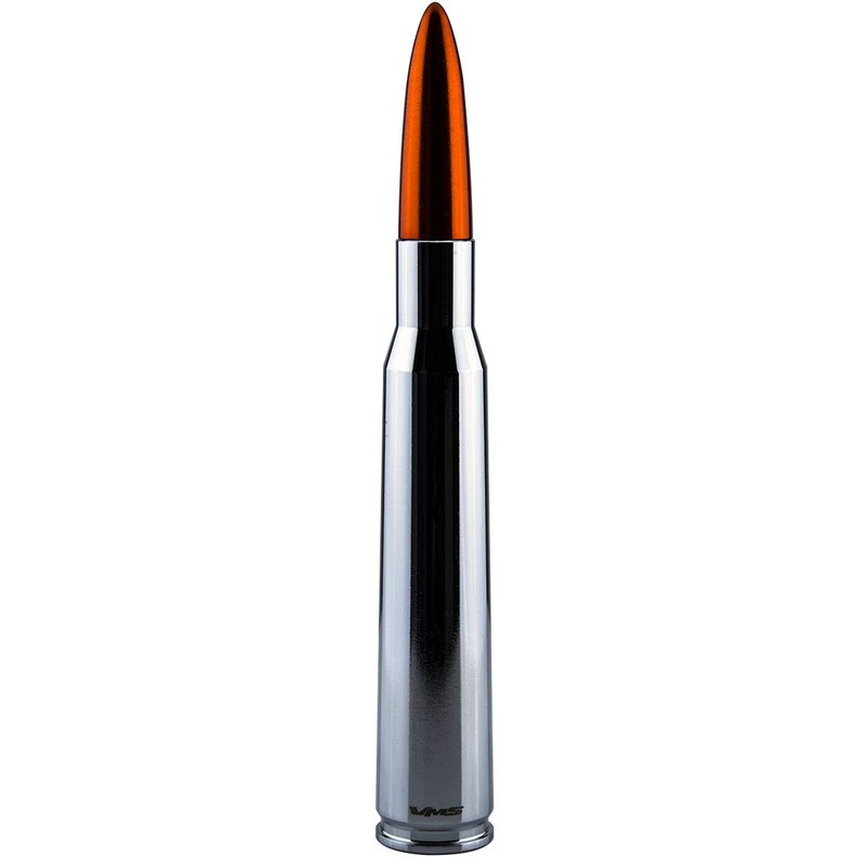 VMS RACING 50 Cal Caliber CHROME ORANGE TIP BULLET ANTENNA in Heavy Gauge CNC Machined Billet Aluminum Short Compatible with Nissan Frontier 97-19 1997-2020