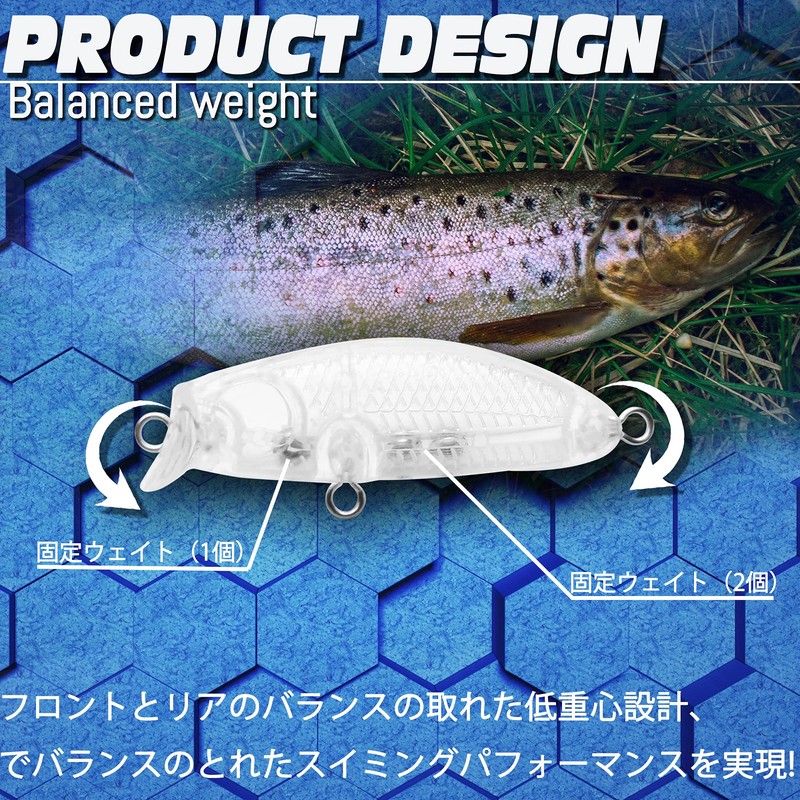 - 煌きのある綺麗なボディで魚を魅了!様々なカラーがあるため、天候や水の濁りに合わせて幅広いルアーチェンジが可能。
