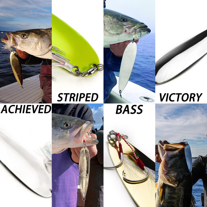 - 【Deadly Attraction for Big Fish Game】VMSIXVM fishing spoons provide brilliant flash in water. More reflective surfaces attract fish and make them strike. VMSIXVM shad spoon fishing lures wobbles within the water mimics the movement of a desperate fish trying to get away from being eaten, which incites the predator instinct to chase it down and eat it. VMSIXVM flutter spoon work best for larger predators such as striped bass, largemouth bass, big trout, pike, crappie, walleye and salmon.
