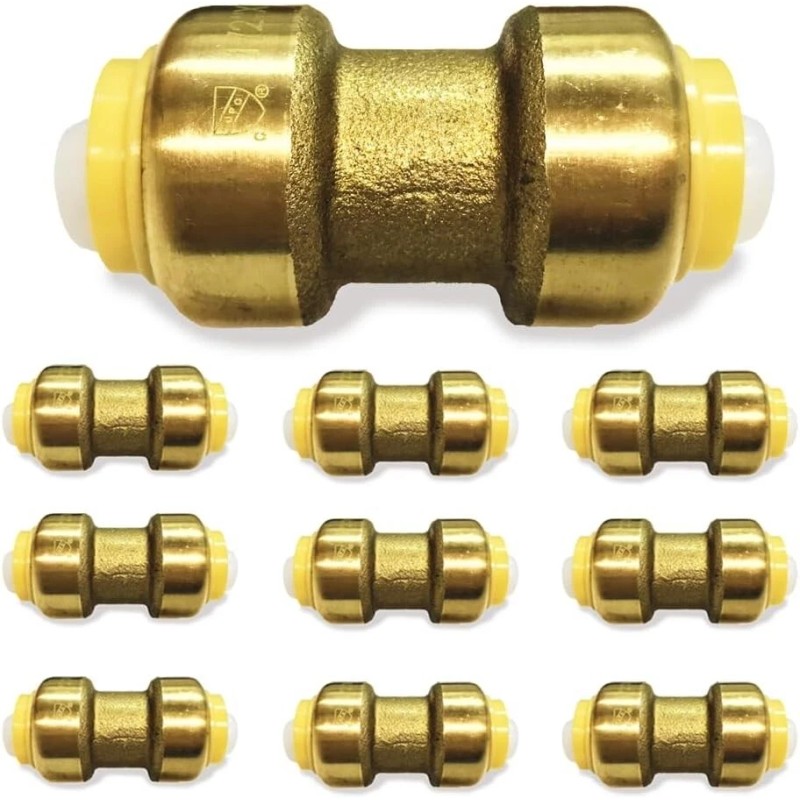 VN Infinite quality Fittings 1/2" Push-fit Straight Coupling 1/2" x 1/2" PEX Brass Pack of 10