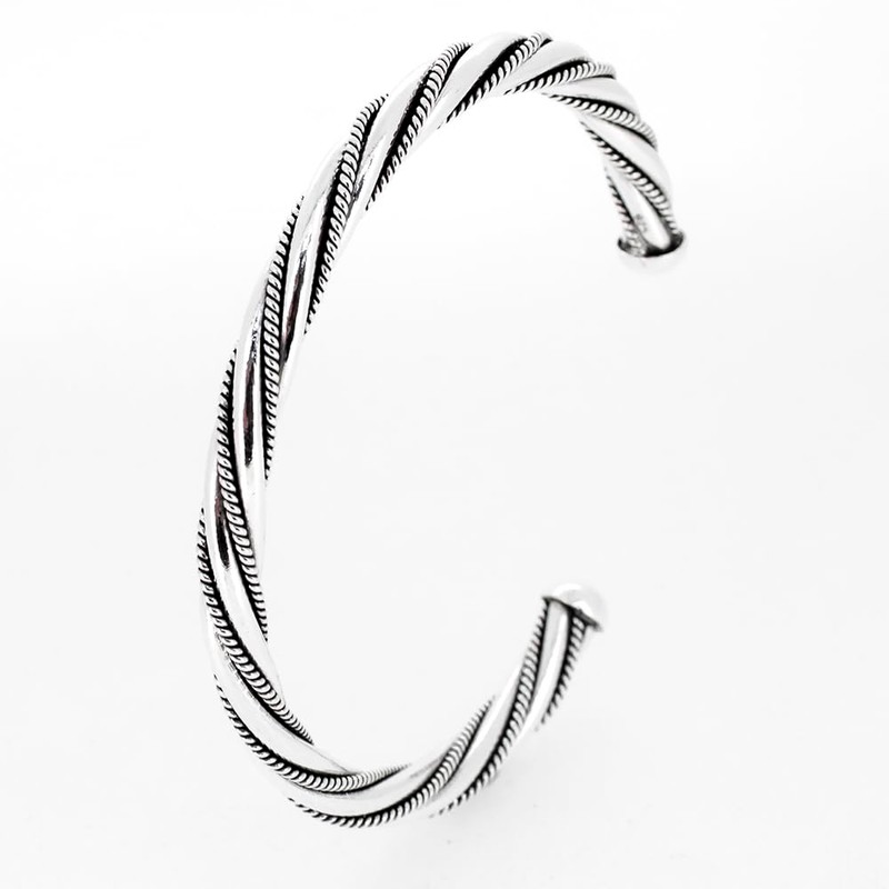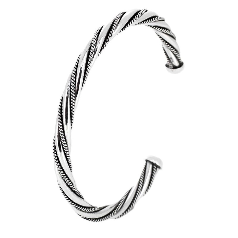 VN Jewelry Men's Silver Torque Bangle | Solid 925 Sterling Silver Torque Bangle Bracelet - Silver Bangle For Men