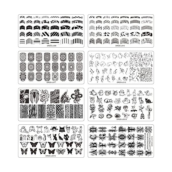 - 【PACKAGE DETAILS】The set include 8pcs 12*6cm manicure plate,2stamper with 2 scrapers,1 storage bag.Mix Animal Bufferfly And French Shape Patterns Travel Patterns Wich you can enjoy from(all nail plates not include any plastic backcover.We recommend to use our plastic backcover when using . Reference Asin B0978QZVFS ,B0978S5F7F ,B0978Q2W8H).