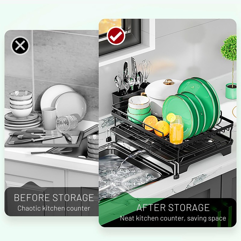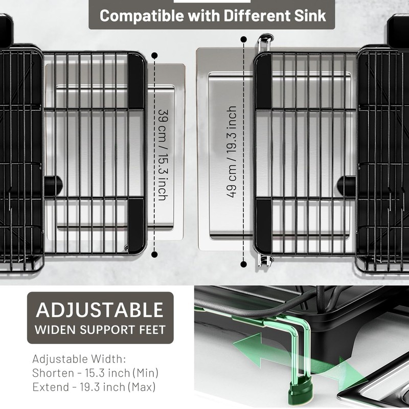 - 【Adjustable Extension Feet】Comparing with regular disk rack, VNIMTI dish rack is designed with a adjustable extension rack, which can not only store utensils on the kitchen countertop, but also support a drainage platform on the sink, making it convenient to place more bowls or cups for drying after cleaning the utensils.