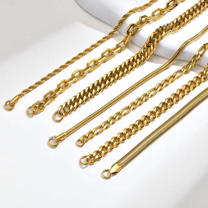 - 7 Classic Designs in 1 Set - This stackable bracelets for men consists of a 7 style chain bracelets. Including a snake chain,herringbone chain, rope chain, paperclip chain, figaro chain, and 2 cuban link chain bracelets. You have a choice how you wear them for your everyday,they look great stacked together or individually, bold and elegant enough to suit all styles of clothing. Also economical choice for you.