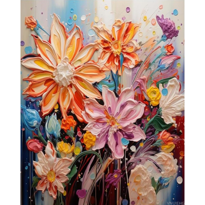 VNUIEHG Colorful Flowers Painting by Number Canvas Kits, Graffiti, Paint by Number for Adults Beginner, Acrylic Oil Painting Number Kits Gift, 40x50cm