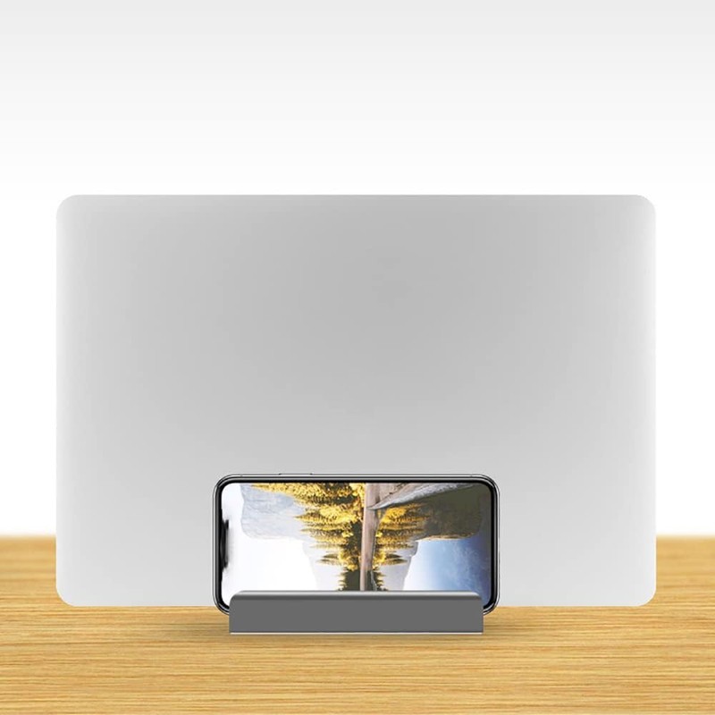 Sleek and thoughtful design with beveled edges and a non-slip silicone mat. This sturdy, non-toxic vertical laptop stand protects your electronics while creating a workspace.