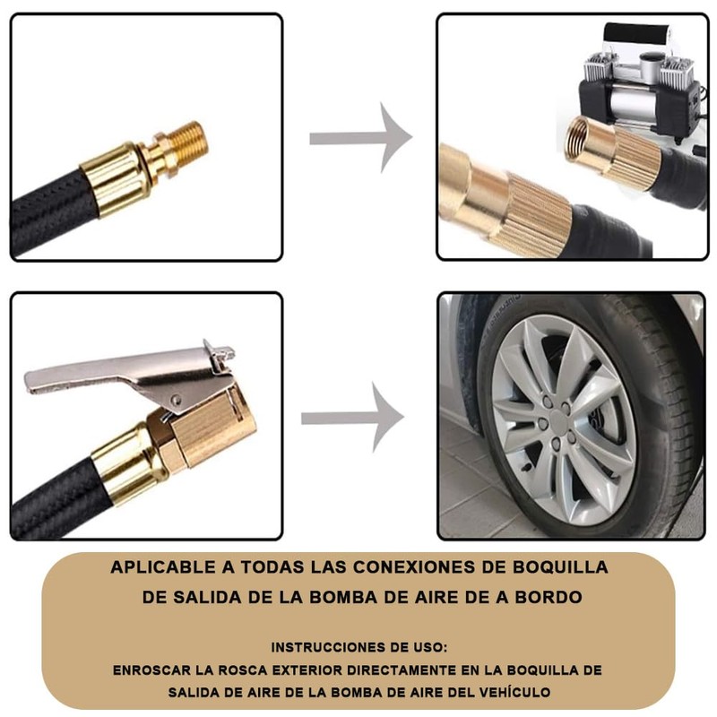- 【Wide Compatibility】The inflator adapter is a standard Schrader valve with a connector, hose for car tyre inflator 16.3 inches is fast acting