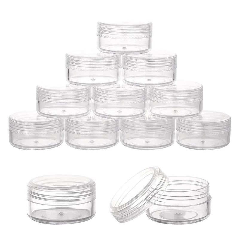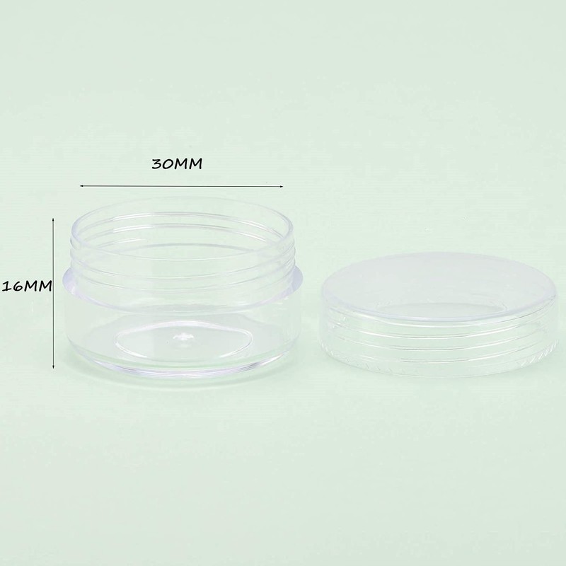 • Transparent plastic container with lids: the small transparent plastic boxes can clearly see what's inside and help you quickly distinguish and get what you want. These small plastic tins are especially valuable when flying as the sizes of creams and hand lotions are very limited. Suitable for professional or home use.