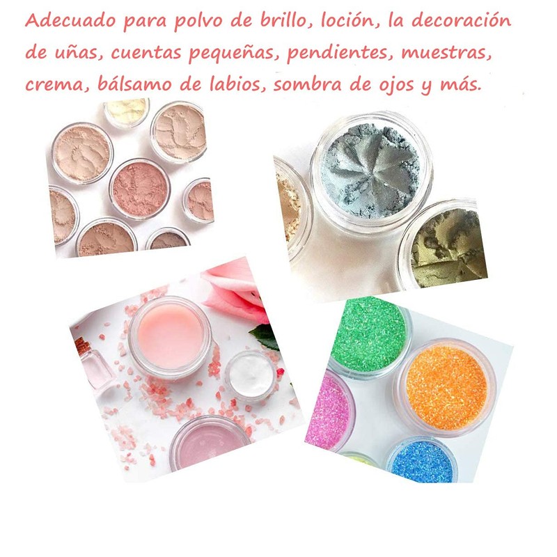 Suitable for glitter powder, lotion, nail decoration, small beads, earrings, samples, cream, lip balm, eye shadow and more.