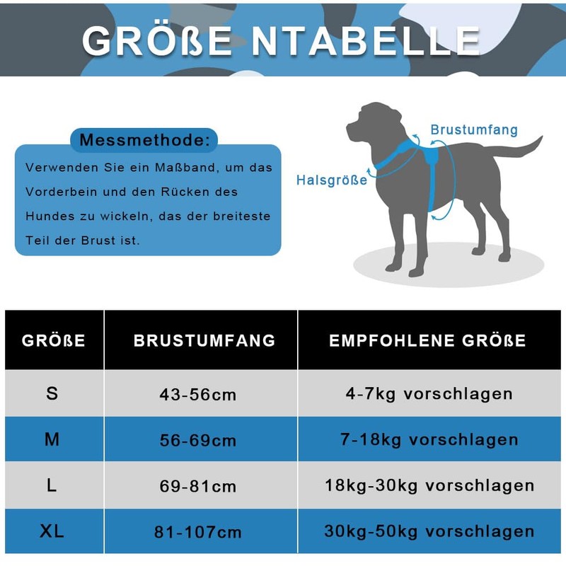 HOW TO CHOOSE THE RIGHT SIZE: Priority is given to the breast size. If your size is between two sizes, please choose the larger size. If your dog is strong or dense, choose the larger size.