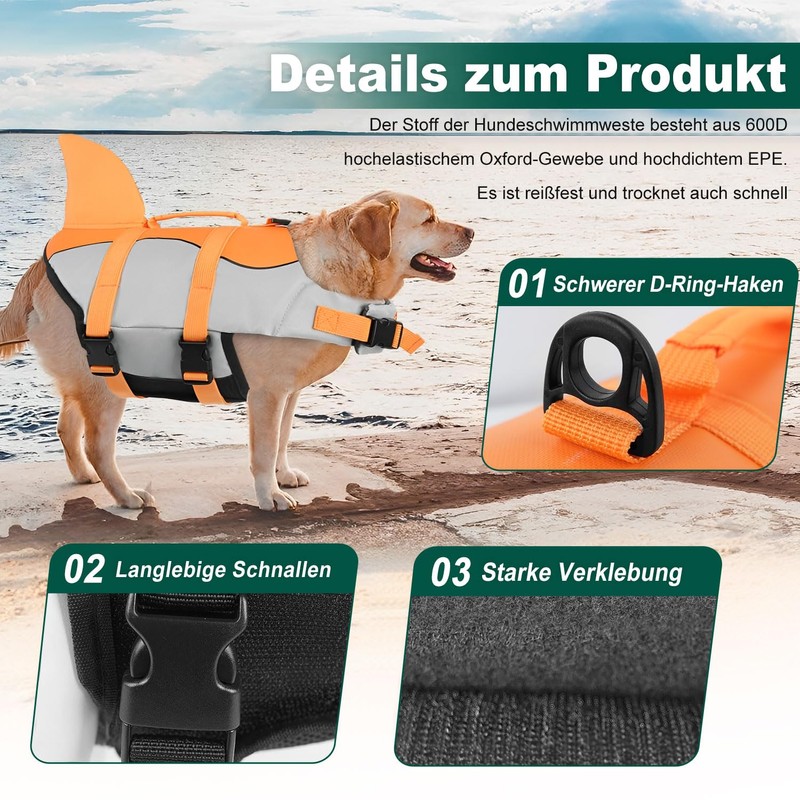 - Easy to dry and clean: The lower abdomen of the advanced breathable mesh can be properly drained and dried. Dog life jackets are suitable for safer water sports, swimming, fishing, sailing and aquagym. Our puppy life jacket features a shark fin design that makes it easier to spot your dog at any time.