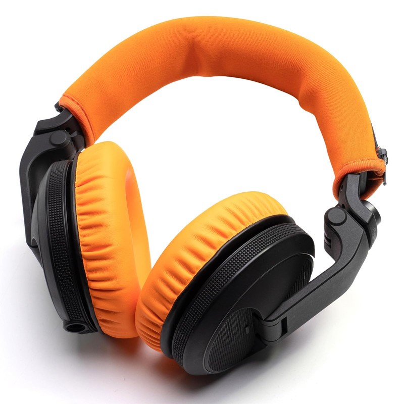 Voarmaks Thick Soft Protein Leather Ear Pads & Headband Cushion Cover Replacement Kits Compatible with Pioneer HDJ-X5 X5BT HDJ-X7 X7BT HDJ-X10 DJ Headphone,with Memory Foam Filling (Orange Kits)