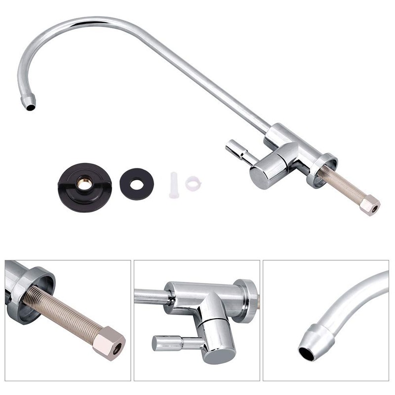 VOBOR Kitchen Taps, Stainless Steel Tap and 1/4 Inch Single Lever Sink Tap, 360° Swivelling High Arc Mixer Tap for Sink Kitchen, Reverse Osmosis Counter, Drinking Water Filter