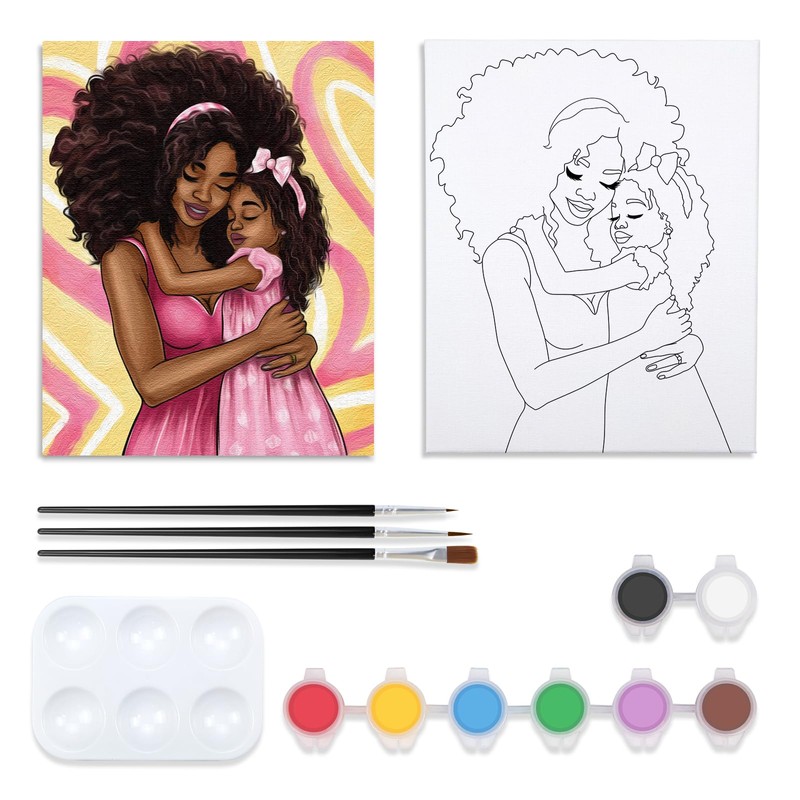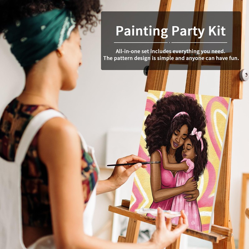 VOCHIC Family Canvas Painting Kit Pre Drawn Canvas for Painting for Adults Kids Child Art Set Paint and Sip Party Supplies Mother's Day Mother and Daughter 8x10 Inches