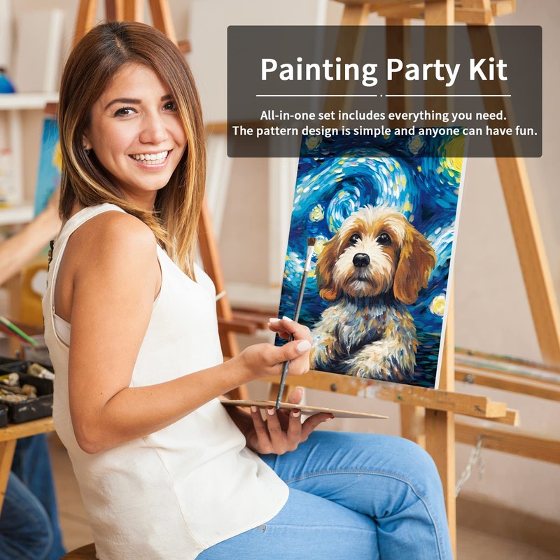 VOCHIC Pre Drawn Canvas Painting Kit for Painting for Adults Party Kits Paint and Sip Party Supplies 8x10 Canvas Starry Sky Puppy Art Set
