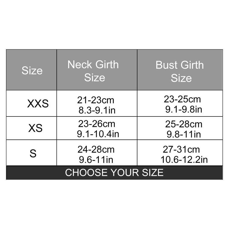 Please note: please measure your pet's chest girth (full part) and neck girth before purchasing.