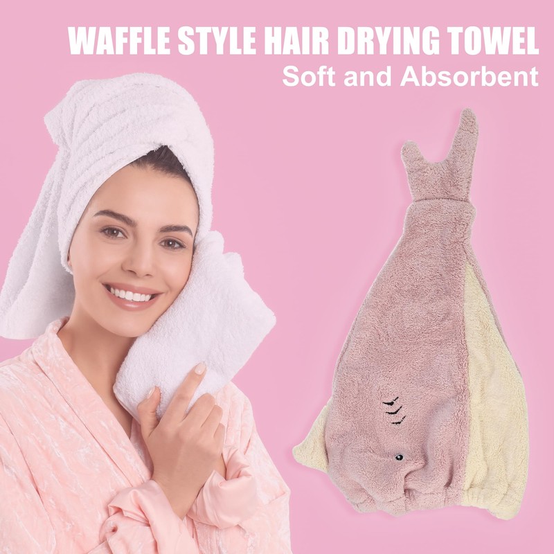 VOCOSTE Hair Drying Towel, Towel Cap, Super Absorbent, Quick Drying, Hair Towel, For Washing Face, Pool, Bath, For Drying Hair After Bathing, Fluffy, Cute, Whale, For Children, Pink