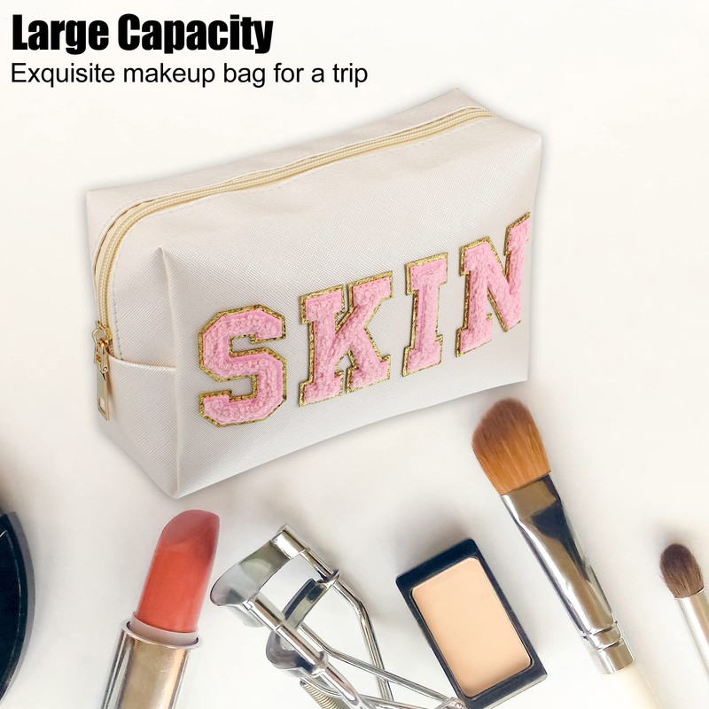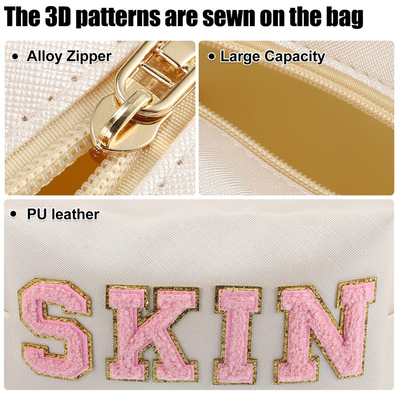 - 3D Patch Toiletry Bag:The toiletry bag is cute design with trendy and beautiful patterns. It is soft and comfortable to touch and has an exquisite appearance.