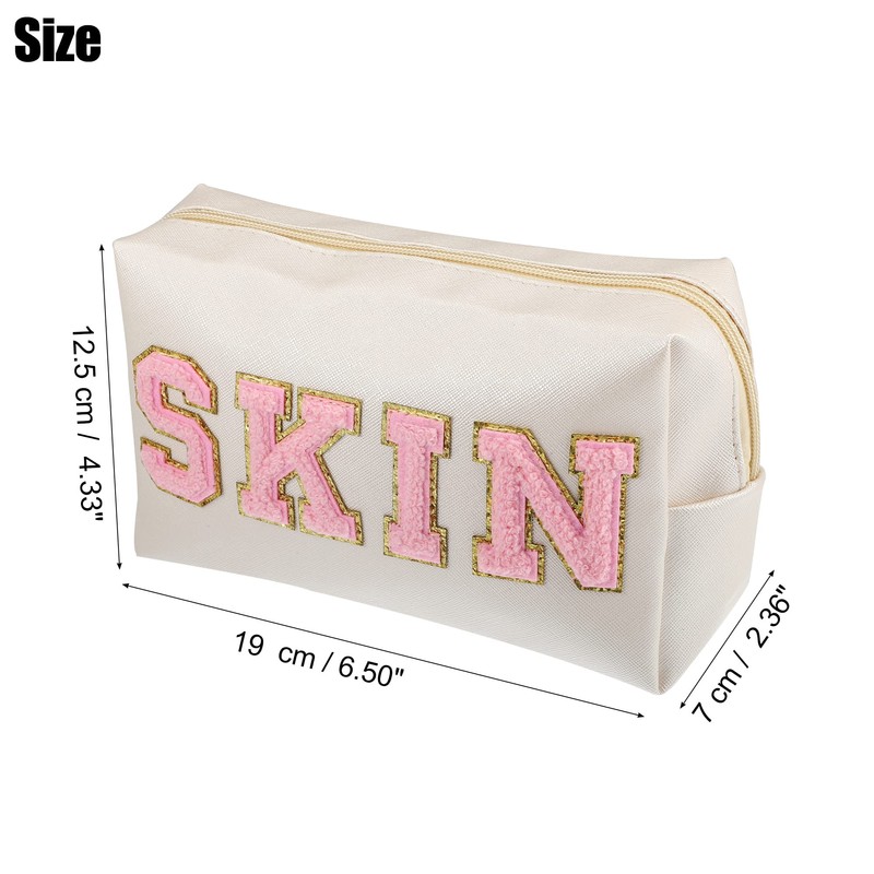 - Portable The toiletry bag has enough capacity and is small and lightweight. It doesn't take up much space in a bag or suitcase and it's easy to organize your skincare products, stationery, toiletries or anything you need.
