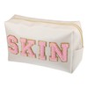 VOCOSTE Patch Small Makeup Bag Alphabet Pattern Toiletry Bag Travel Cosmetic Organiser for Women Daily Use, beige