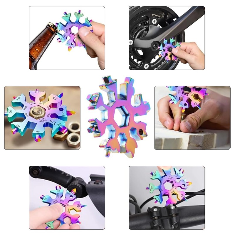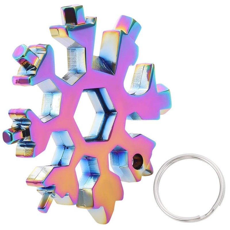 - CONTENT & SIZE You will receive an 18 in 1 snowflake multitool (diameter 2.5 inch) with key ring included. Small, compact and easy to carry, perfect for attaching to keys, backpacks or belts