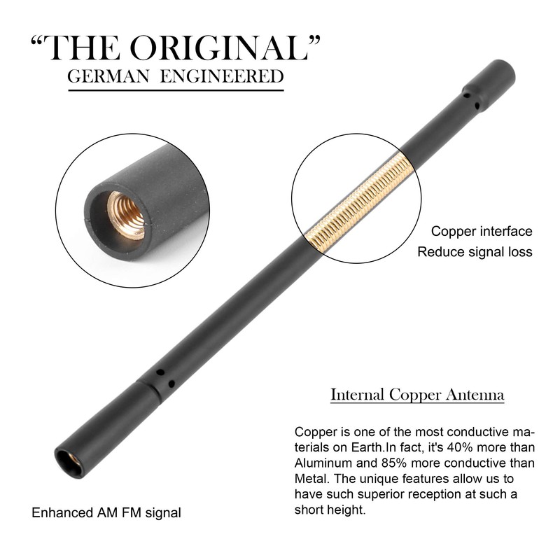 - ✔ Fácil instalación: sin necesidad de herramientas, la antena es fácil de instalar en cuestión de minutos. Simplemente retira la antena original y atornilla la nueva antena corta en tu soporte de antena existente a mano.