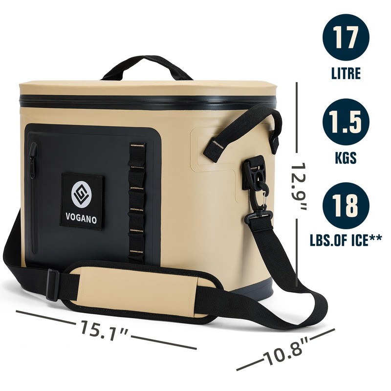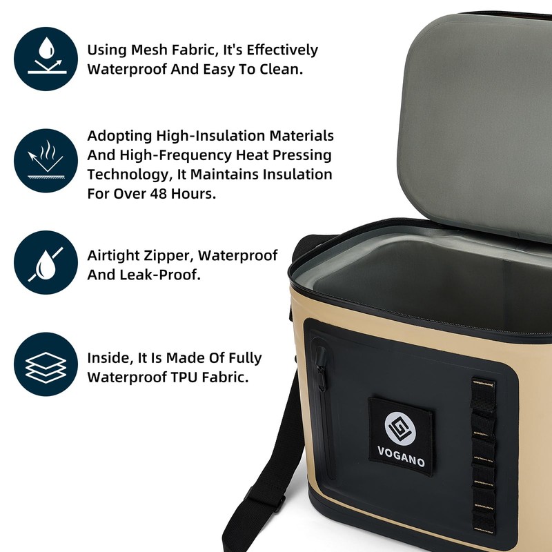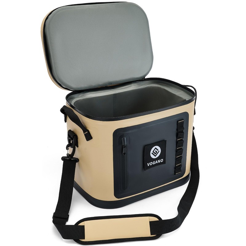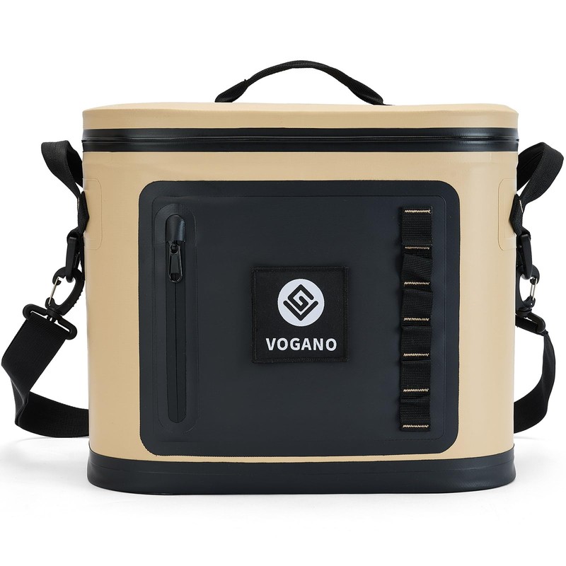 Vogano Soft Cooler - Insulated Leak-Proof Cooler Bag with Waterproof Zipper | 28 Can Portable Ice Chest for Camping, Beach, Travel, Picnic, Fishing (Khaki)