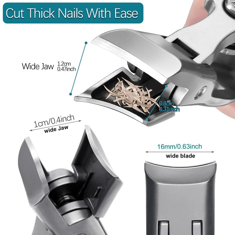 - Clean Cut and Clean Room -- Toe nail clippers for thick nails for seniors designed unibody catcher and blades together, more effectively preventing nail clippings from splashing and hurting your eyes. Mens nail clippers with catcher can effectively keep your home clean after clipping nails
