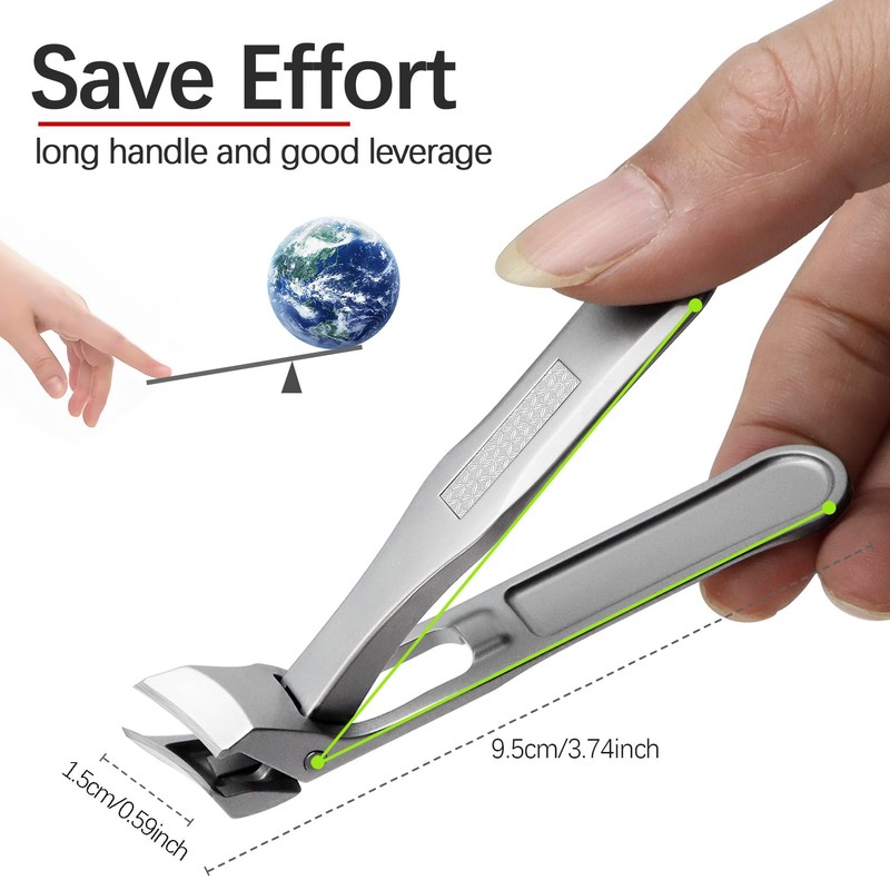 - GOOD LEVERAGE LONG HANDLE SAVES EFFORT - Ingrown Toenail clippers for thick toenails designed with 3.74 inch long handle, the extended and widen handle with good leverage to save effort efficiently and more comfortable, allowing you to cut hard and thick nails effortlessly. And no worry about nail clippers for seniors slipping out of your hands with the non-slip handle
