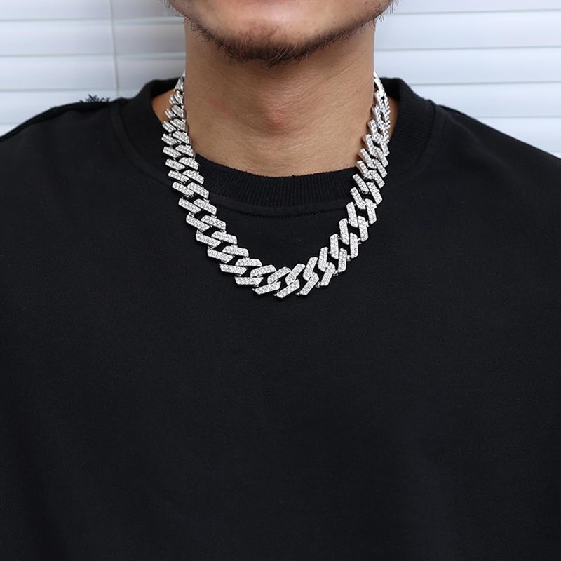 • 【Material】: Iced Out Cuban Chain is made of high-quality alloy. High quality AAA+ rhinestones reveal brilliant shine. The iced out chain is nickel-free, lead-free and harmless to health. High quality gold silver plated chain necklace. We paved by hand with 5A+ round well cut cubic zirconia for an exquisite, glistening effect. The high-tech electroplating treatment ensures that it is not easy to tarnish or fade. It's durable, lead-free, nickel-free, and safe for your health.