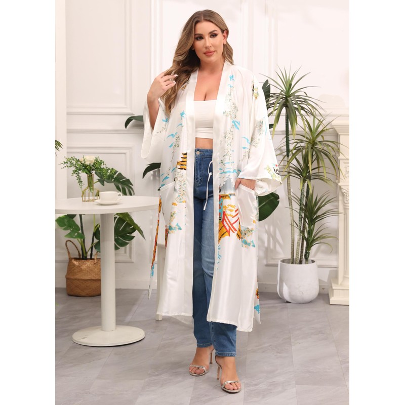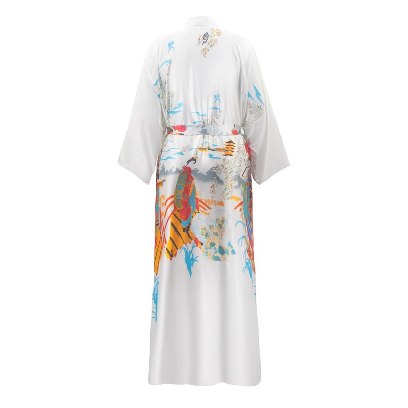 - DESIGN This kimono robe is in unique Japanese SAKURA Ukiyoe and charming geisha patterns, with straps on the inside and waistband on the outside, ankle length, 3/4 sleeves