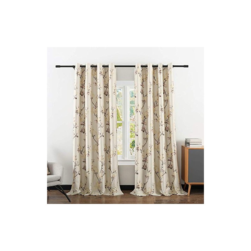VOGOL Blackout Curtains Magnolia Design Pattern, Living Room Dining Bedroom Classic Window Curtains, Room Darkening Thermal Insulated Drapes Grommet Top, 2 Panels 52" Wx96 L