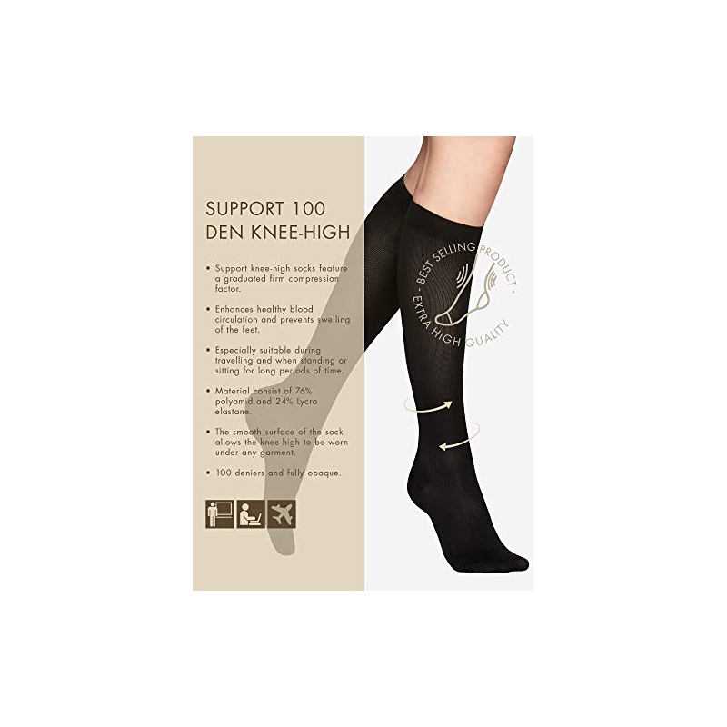 Vogue 100 Den Compression Socks Knee High Support Stockings for Women 1 Pair,...