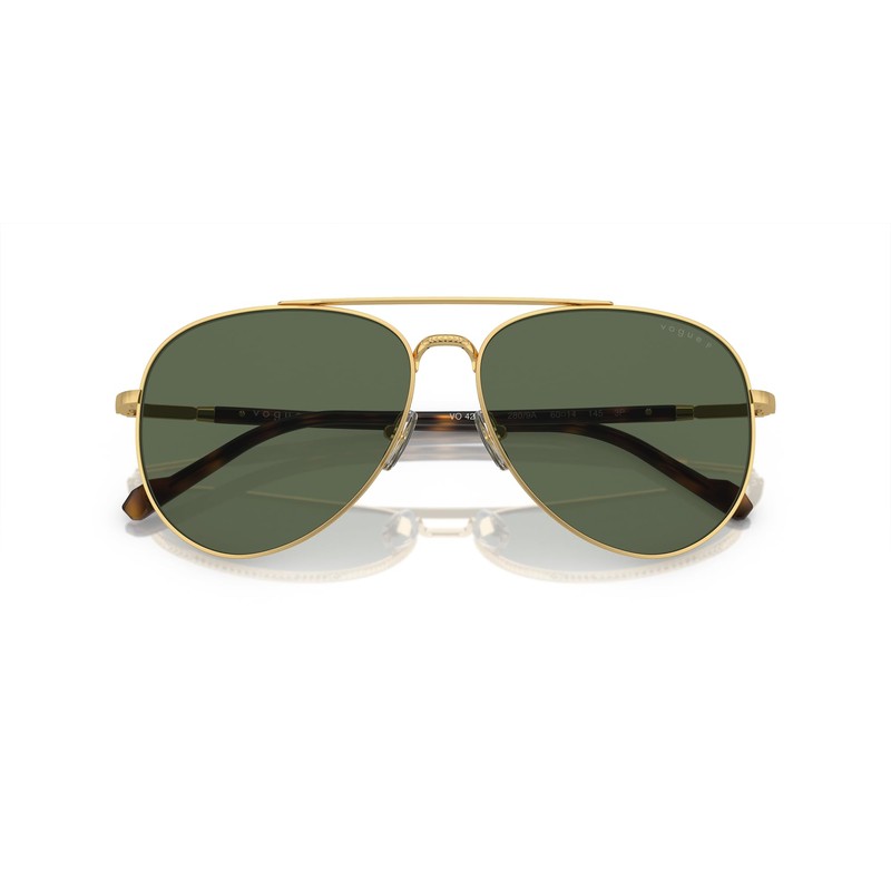 - FRAME FEATURES: VO4290S sunglasses feature an aviator, gold metal frame with adjustable temples and dark green polarized lenses.
