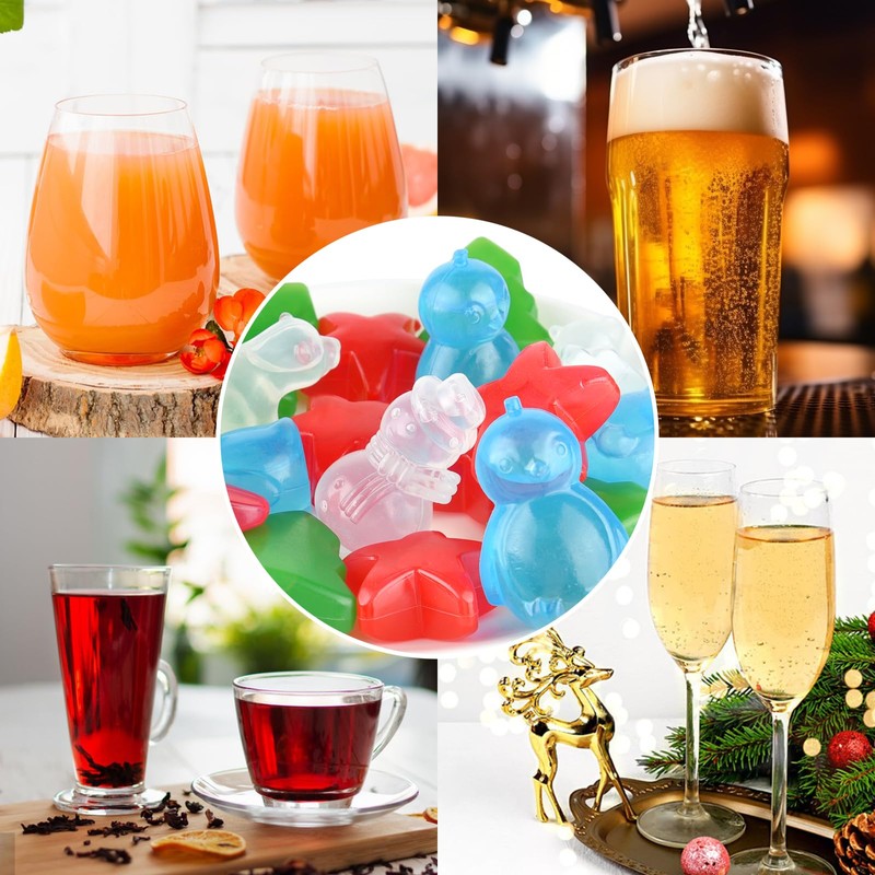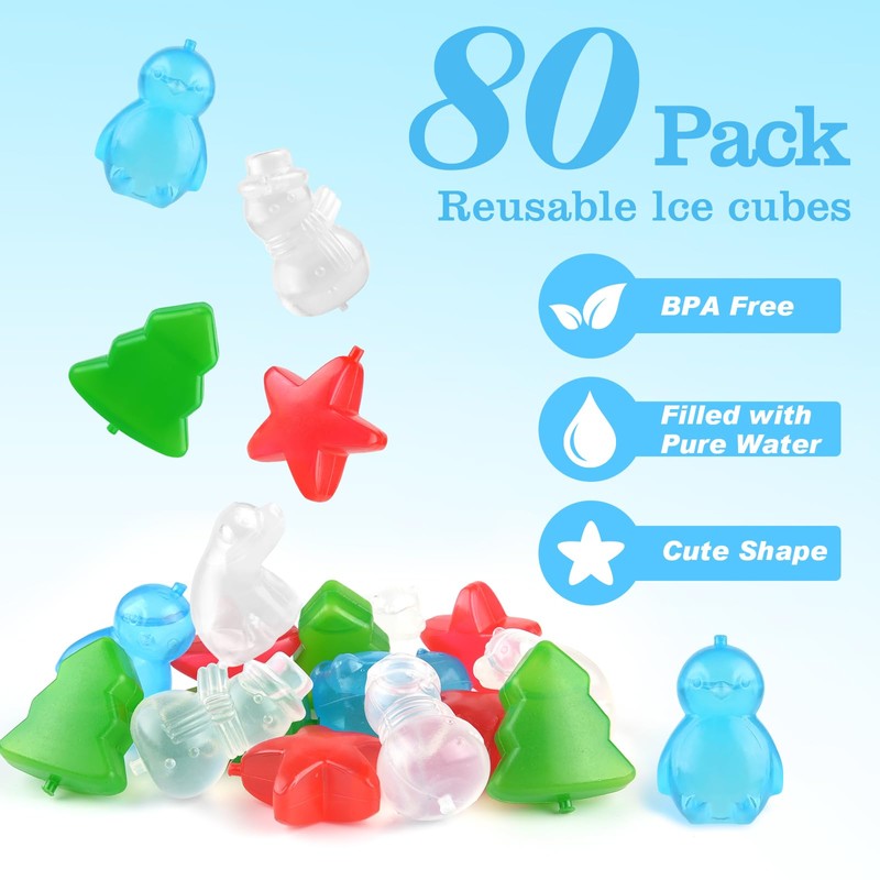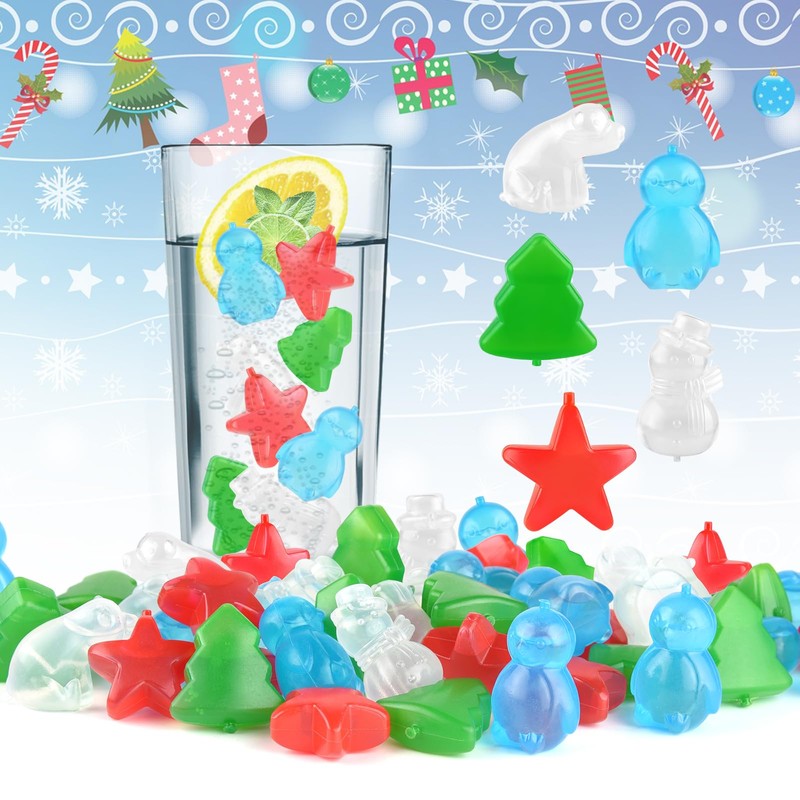 VOGVOG 80 Pack Christmas Reusable Ice Cube for Drinks, Snowman Xmas Tree Shaped Plastic ice Cubes, Refreezable Ice Cubes Non-melting for Christmas Party, Bar, Home Celebration BPA Free Decor