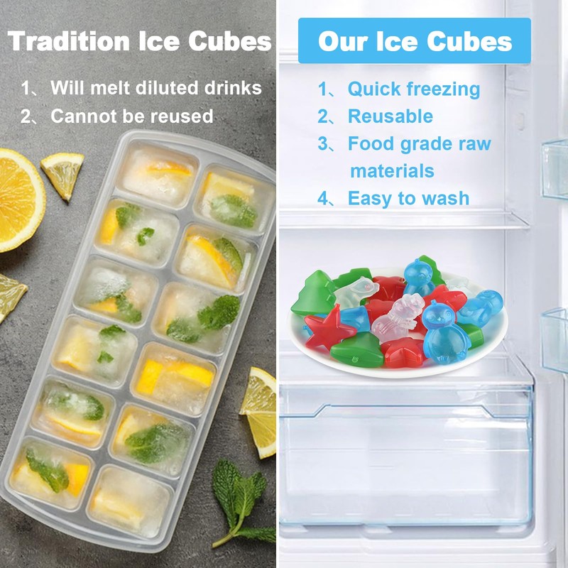 - CONVENIENT & REUSABLE: Reusable ice cubes can be put directly into the refrigerator, no water, only a short time, then take it out for use. If you want to use it again, wash it, dry it, and freeze it