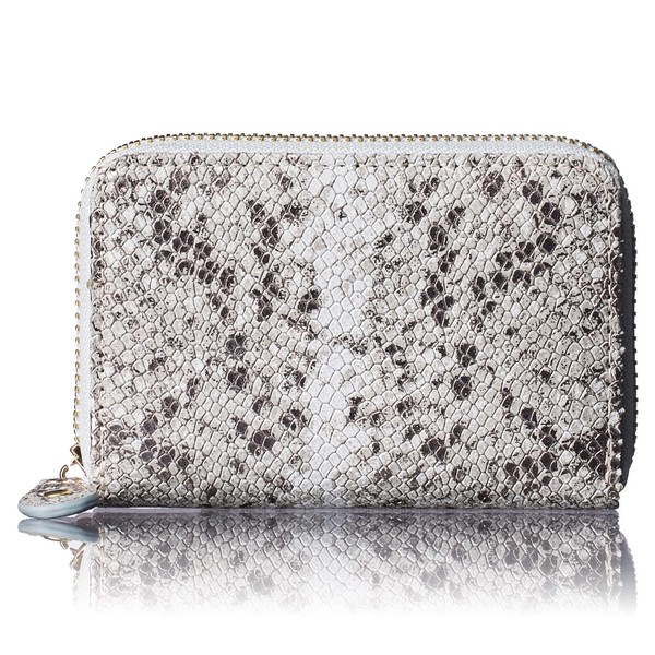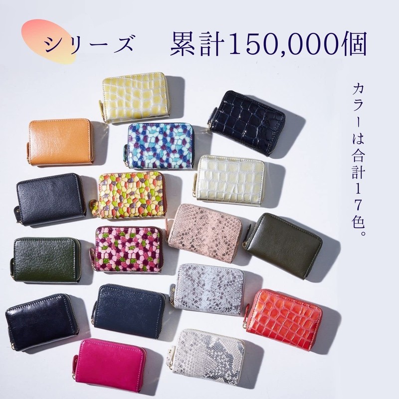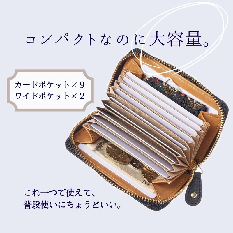 [VOICE] Italian Cowhide Leather Round Zipper Chabara Card Case, S-Blue