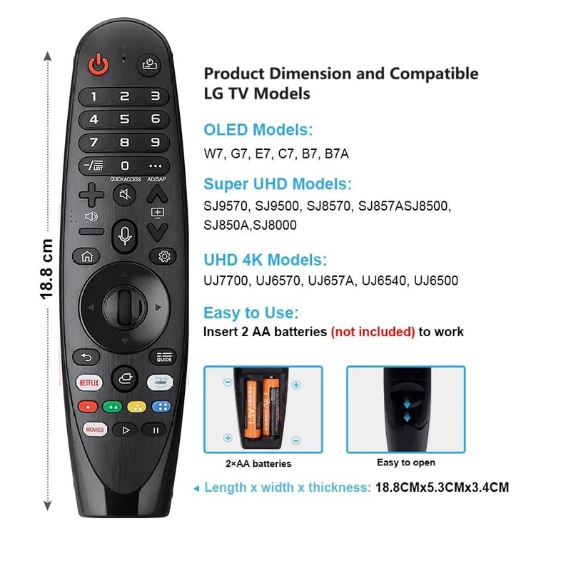 • Voice Magic remote replacement for LG smart TV Nano 8 9 Series 4K/ 8K Ultra HD Smart LED NanoCell TV, 4K LED UHD Smart TV and OLED 4K UHD Smart TV.