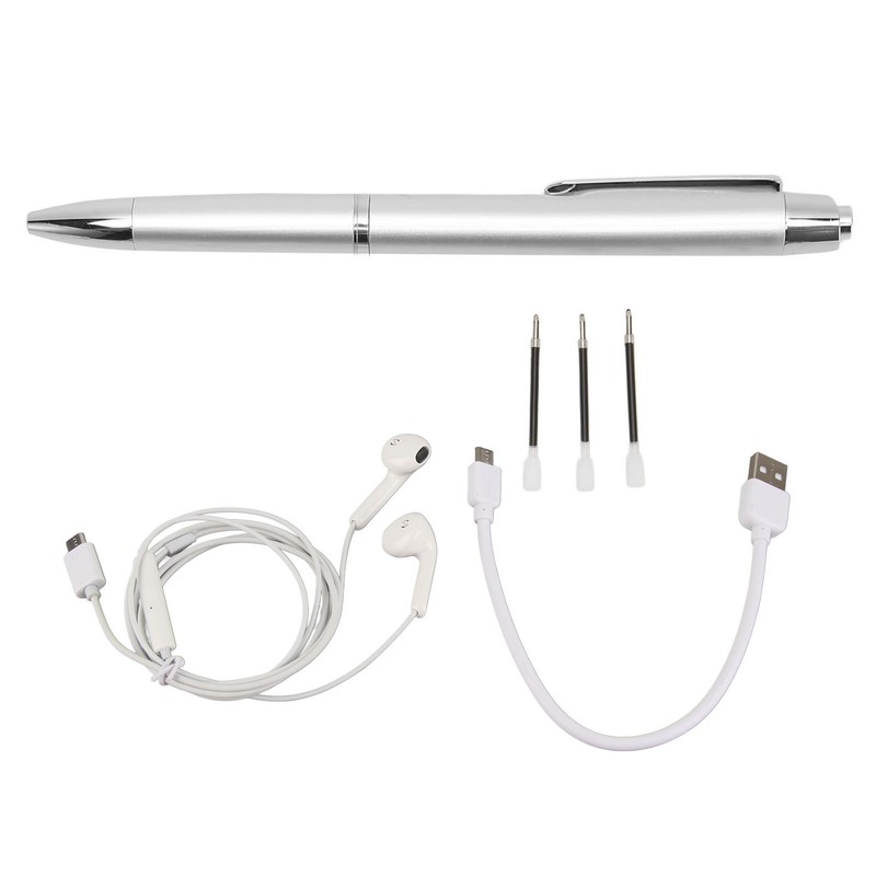 1、DURABLE MATERIAL: Digital voice recorder pen is made of metal alloy, CNC process manufacturing and baking paint plating process, durable, anti oxidation, anti scratch. 2、ONE BUTTON OPERATION: Ballpoint pen type mechanical bounce switch, press to start recording (pen cap lowered), and then press to end recording and save (pen cap raised). 3、MULTI PURPOSE: When recording data, you can write while recording, to achieve two way recording, you can also replace the pen refill as a signature pen use. 4、NOISE REDUCTION: Voice activated recorder pen with acoustic 8 core DSP noise reduction module, for environmental noise has a certain reduction effect. 5、SUPPORT OTG: Connect OTG adapter to achieve cell phone management and file transfer, support for Android and for iOS cell phone connection, plug and play, simple and convenient. 6、CABLE CONTROL: Plug in the headset can play music and recording files, support cable control headset, control switching songs, fast forward and backward, volume and confirm or delete.