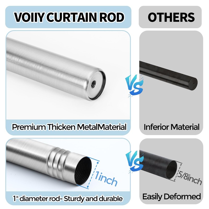 - Built to Last:1 Inch diameter outer rod and 7/8" inner rod, this drapery rod is strong and durable, heavy duty brackets and solid screws that don't strip.Long-lasting and strong enough that can withstand the heavy curtains.
